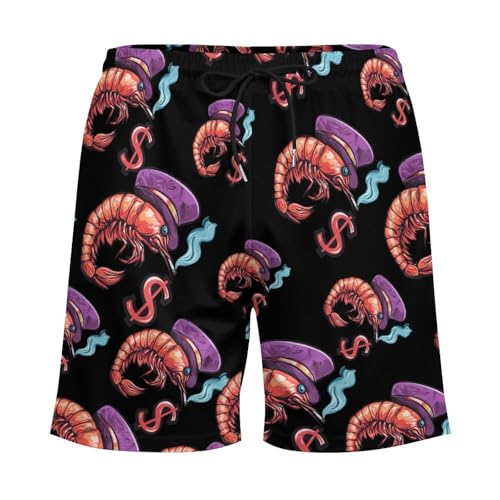 Shrimp Pimp Cherry Shrimp Mens Swim Trunks hasty Dry Beach Board Shorts with Pockets