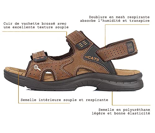 Men's Leather Sandals Comfortable Open Toe Athletic Fisherman Walking Sandal Summer Outdoor Beach Sport Hiking Shoes for Men 6
