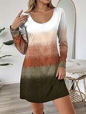 More information about Women's Mini Dress Crew Neck Long Sleeve T Shirt Dress Tee Dress A Line Dress Casual Daily Regular Fit Graphic Geometric Blue Purple Brown Fall Winter