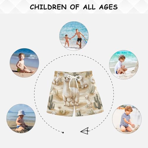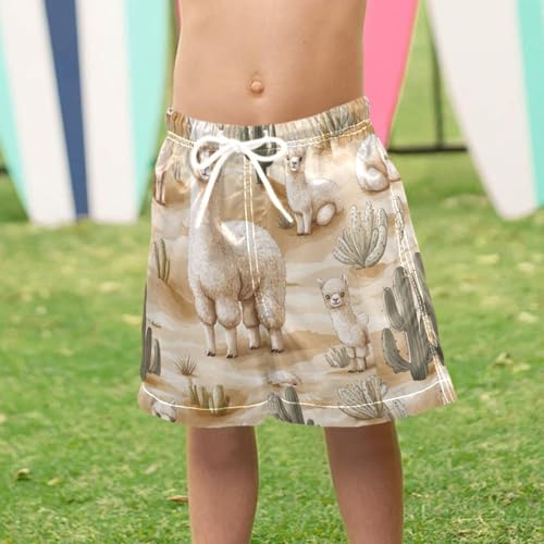 Pigsaly Boys' Swim Board Shorts Watercolor Green Cacti Llama Alpacas Boy's Swim Trunks Kids Swimwear 4T 6
