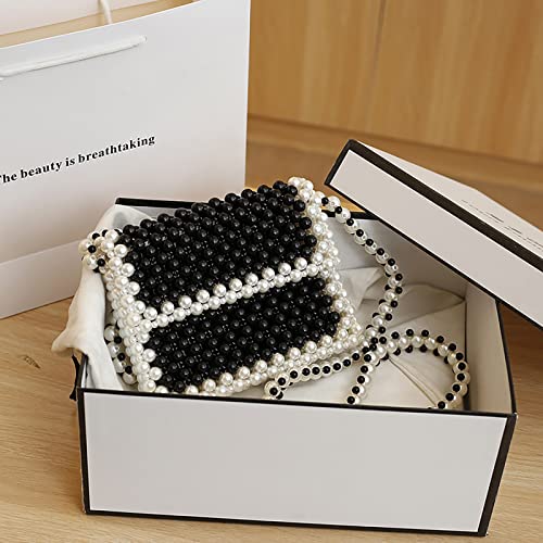 Women's Pearl Bag Crystal Pearl Black Bag Hand Woven Beaded Bag Retro Handheld Shoulder Crossbody for Wedding Party Bridal Party Gifts