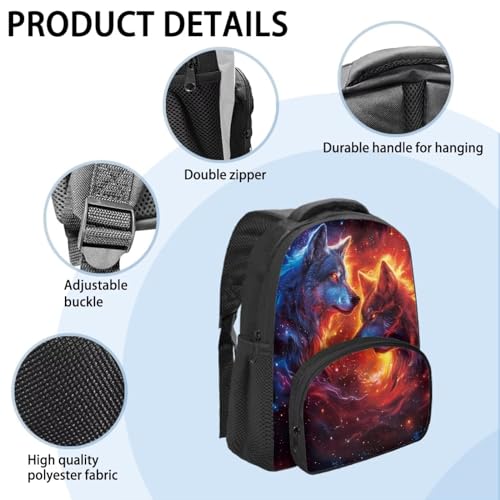Red and Blue Wolf Toddler Backpack for Boys, Preschool Kindergarten Mini Daycare Bag for Kids Back to School Supplies 7