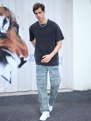 Mens Baggy Cargo Jeans Wide Leg Streetwear Jeans Loose Fit Hip Hop Denim Pants 5