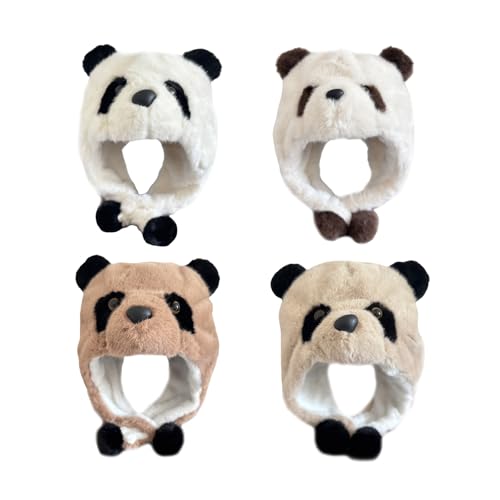 Balaclava, Lovely Plush Panda Hat with Earflap Female Kids Activity Ski Hats Pullover Ear Protective Trapper Hats 4