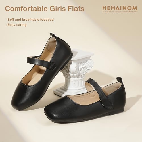 Hehainom Girls Dress Shoes Flower Girl Toddler Little Big Kids Square Toe Flats Mary Jane Wedding School Shoes 6