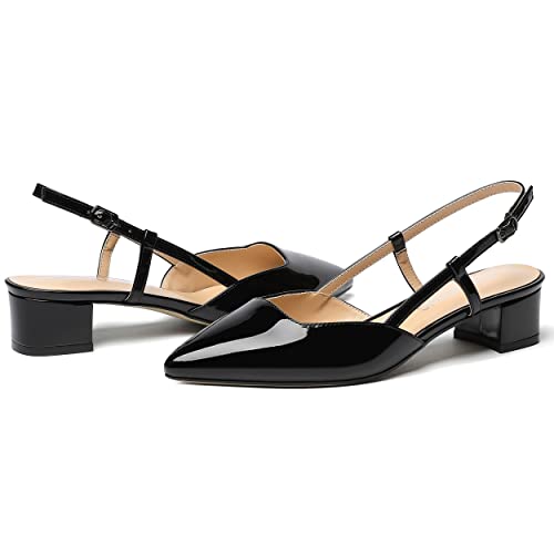 WAYDERNS Women's Pointed Toe Patent Slingback Ankle Strap Chunky Low Heel Pumps Business Work Dress Shoes 1.5 Inch 1