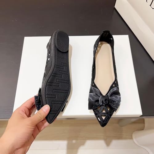 WENJIAZHIZHI Women Rhinestones Bowknot Ballet Flats Pointed Toe Eyelets Ballerina Flats Comfortable Slip-on Dressy Shoes 6