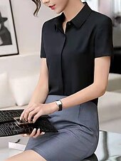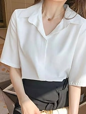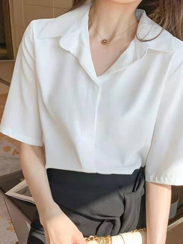 More information about Women's Shirt Texture Blouse Plain Daily Stylish Basic Short Sleeve Shirt Collar Regular Tops Work Daily Holiday Buttons Black White Spring Fall