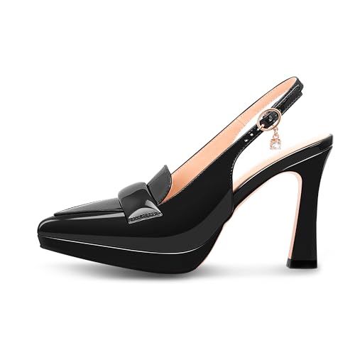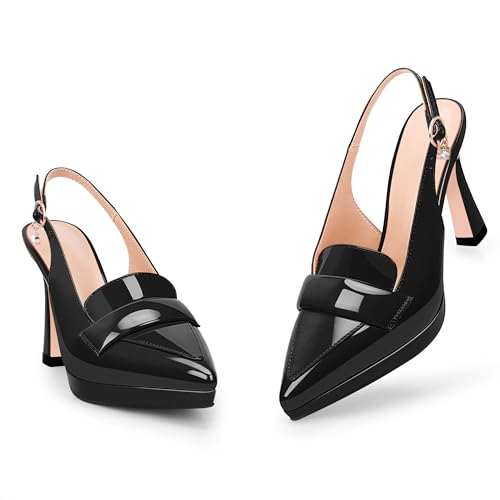 More information about Women's Slingback High Heel Pointed Toe Platform Pumps Buckle Strap Patent Leather Dress Shoes