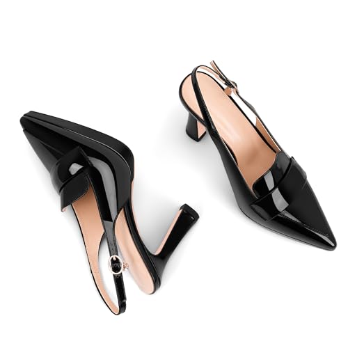 • 【Luxurious design of crystal pendant】 Elevate your elegance with a sparkling crystal pendant delicately adorning the slingback strap. The pointed toe pumps combine modern minimalism with dazzling details, perfect for weddings, galas, or date nights.