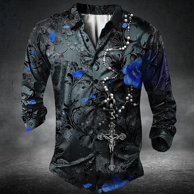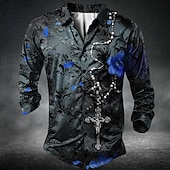 More information about Men's Templar Cross Romantic Rose Shirt Button Up Shirt Long Sleeve Dark Gothic Style Holiday Streetwear Summer Spring Turndown 3D Print Collared Shirts Red Blue Purple