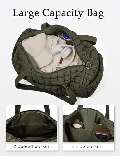 HOT ! Quilted Travel Duffle Bag Large Weekender Bag Puffer Overnight Bags & Quilted Makeup Bag Puffy Cosmetic Bag Cute Puffer Travel Toiletry Bag for Women Girls