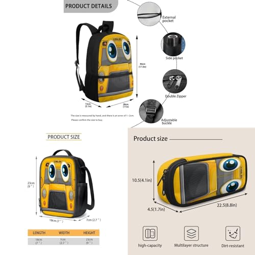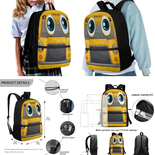 More information about Cartoon School Bus Print Kids Backpack Set with Lunch Box Pencil Case for Boys Girls Elementary Primary Schoolbag Set of 3 Satchel Rucksack Casual Shoulder Bag Daypack