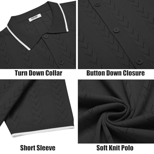 COOFANDY Mens Knit Polo Shirts Button Down Short Sleeve Shirt Summer Casual Beach Vacation Tops