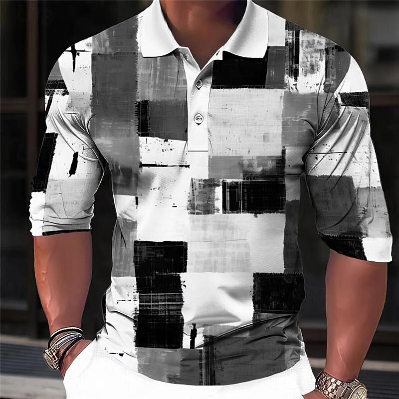 Highlights - Stay stylish and comfortable in this long-sleeve men's polo shirt - Stand out with the trendy color block design and print - Featuring a classic turndown neckline for a refined look - Perfect for casual or semi-formal occasions