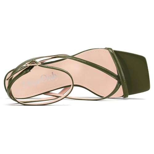 DearOnly Womens Square Toe Thong Strappy Kitten Heels Ankle Strap Party Dress Shoes Mid Heel Sandals 2.6 Inches Heels 4