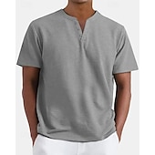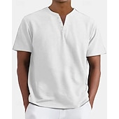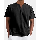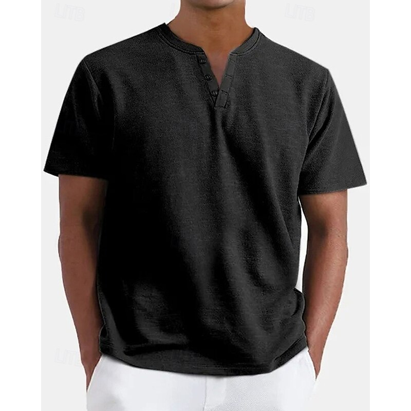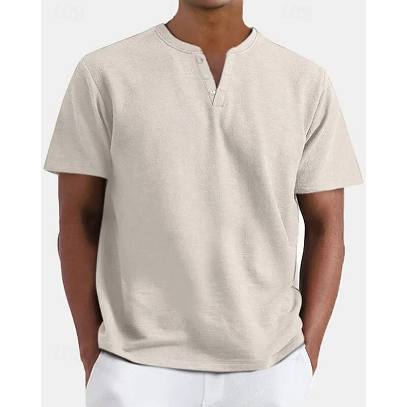 More information about Men's T Shirt Henley Shirt Tee Short Sleeve Shirt Short Sleeve Henley Summer Plain Fashion Designer Basic Buttons Vacation Street Going out Apricot Black White Top Tee for Men