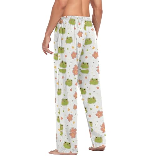 Men’s Kawaii Frog Pattern Pajama Pants with Pockets, Comfortable Lounge Sleep Bottoms#580 2