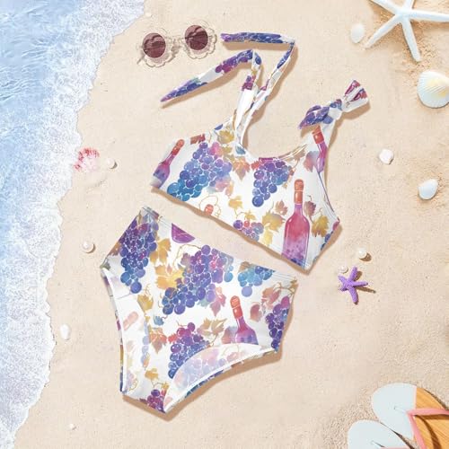 KLL Grapes Bottles Wine Girl Two Piece Bikini Sets Scoop Neck Swimsuit Swimwear Adjustable Strap 2