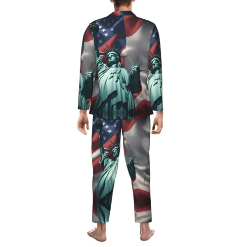 Statue Of Liberty Flag Mens Pajamas Set, Sleepwear Button Down Pjs Set For Bedtime Routine, Morning Lounge 1