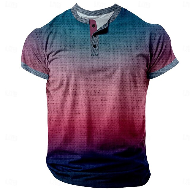 More information about Men's Color Block Henley Shirt Short Sleeve 3D Print Fashion Designer Comfortable Daily Summer Blue Red Green Henley Henley T-Shirt