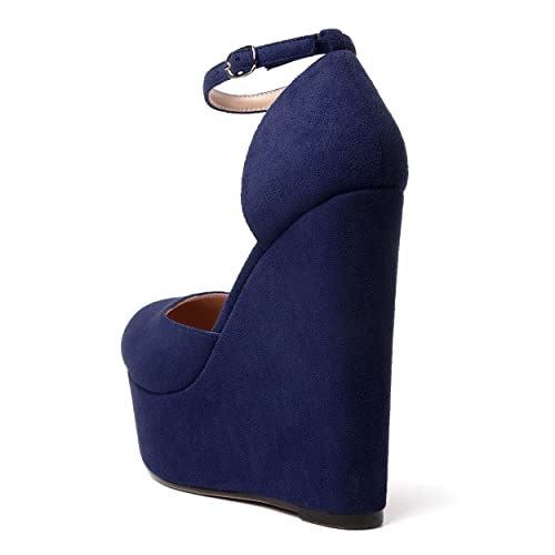 WAYDERNS Womens Ankle Strap Buckle Solid Dress Platform Party Round Toe Suede Wedge High Heel Pumps Shoes 6 Inch 5