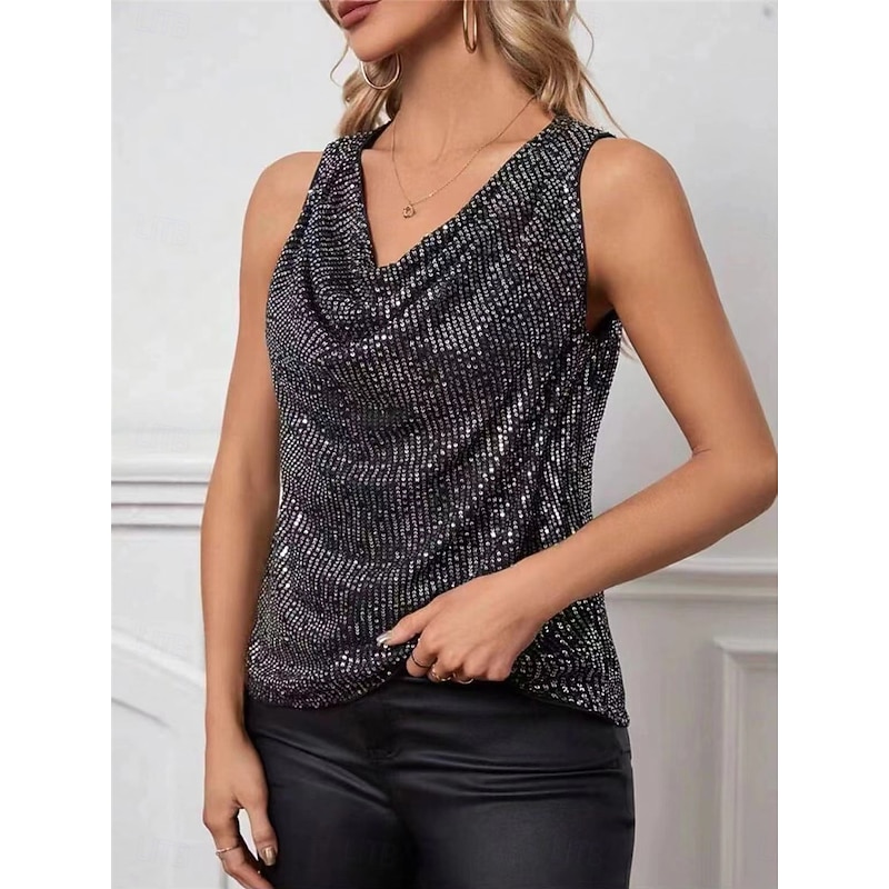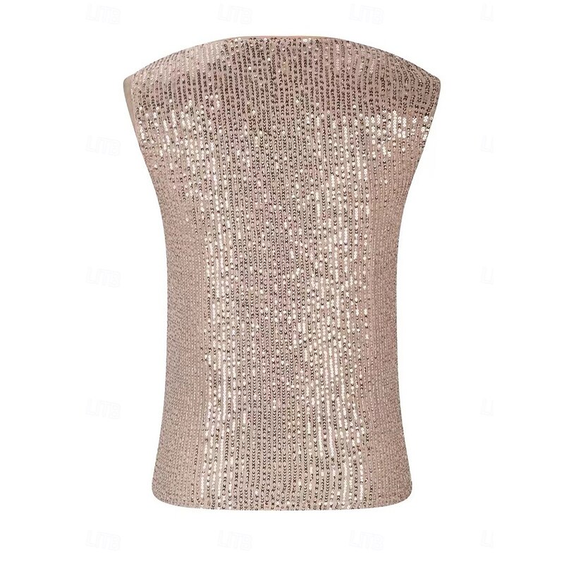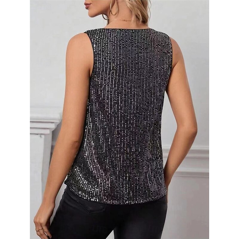 More information about Women's Sequin Sparkly Party Glitter Solid Color Sexy Casual Sleeveless Crew Neck Regular Tops Daily Sequins Black Green Khaki Summer