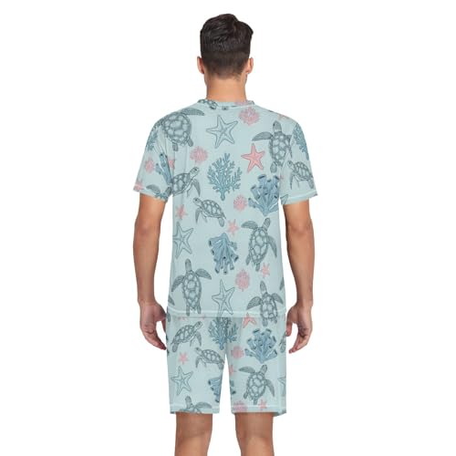 Mens Short Sleeve Pajama Set Ocean Life with Sea Creatures 2-piece Lounge Sleep Sets Men's Sleepwear S-XXL 2