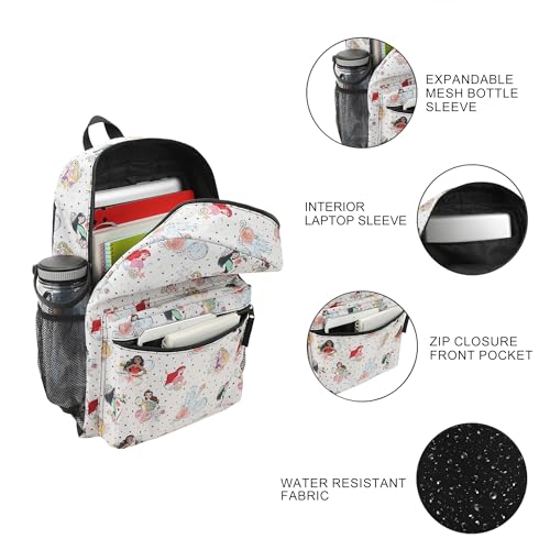 HOT ! Disney Princess Characters All-Over Print 16" White Backpack