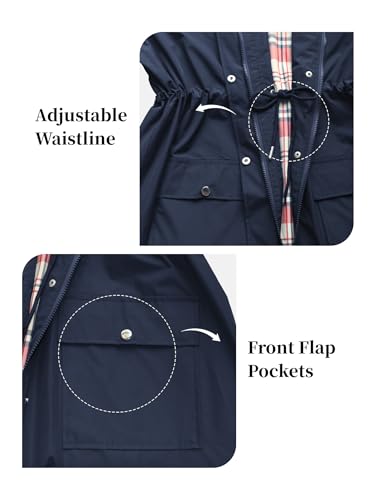 • VERSATILE Fit: Kikibell raincoats are designed with an adjustable drawstring waist, by tightening or loosening the drawstring helps the jacket fit different body shapes better. The stylish red plaid lining adds a trendy touch when the cuffs are folded. Perfect for year-round wear and pairs effortlessly with a sports bra for a sporty look or a casual top for a relaxed vibe, making it a must-have fashion staple