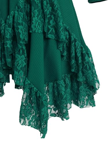 FYMNSI Girls Sweater Dress Boho Long Sleeve Ribbed Knit Floral Lace Trim Asymmetric Hem Kids Birthday Christmas Casual Dress 6