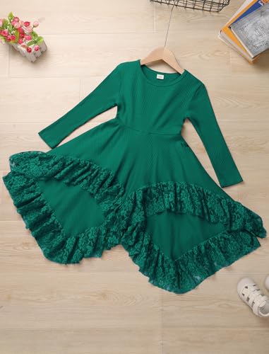 • Girls Christmas Sweater Dress: Girls fall dress, long sleeve round neck top bodice, asymmetric handkerchief hem lace trim skirt dress, trimmed with intricate floral lace, flattering a-line knee length christmas sweater dress for spring autumn and winter causal wear
