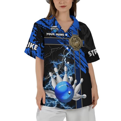 Custom Bowling Hawaiian Party Shirt 3D Button Down Shirt with Bowling Theme Graphic On it for Bowling Team