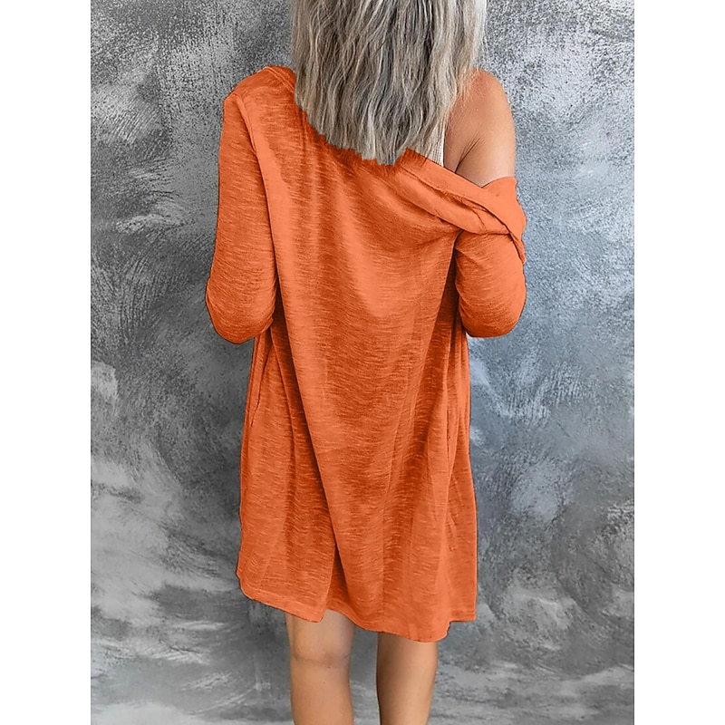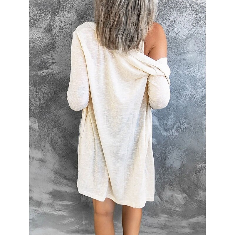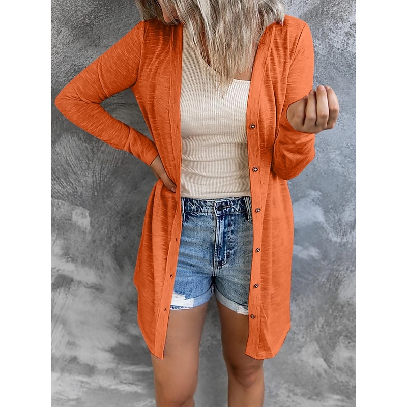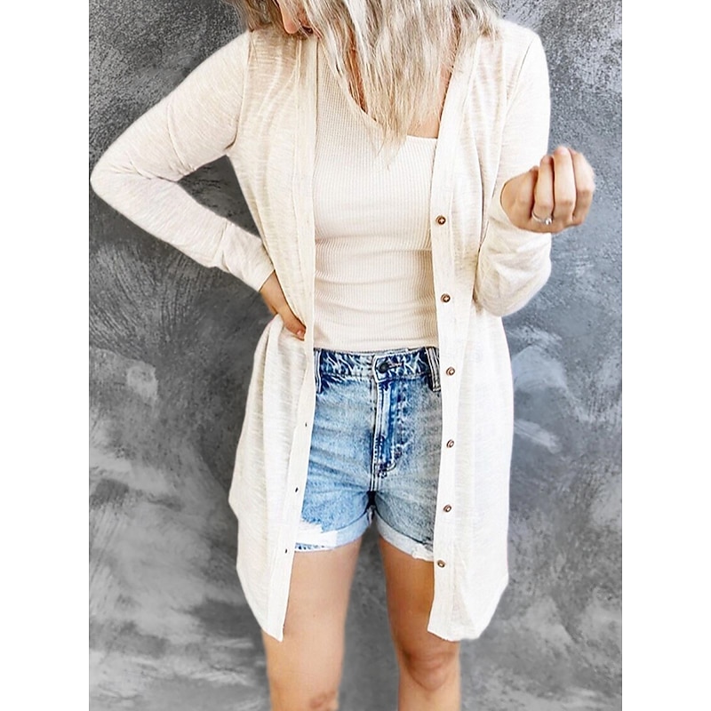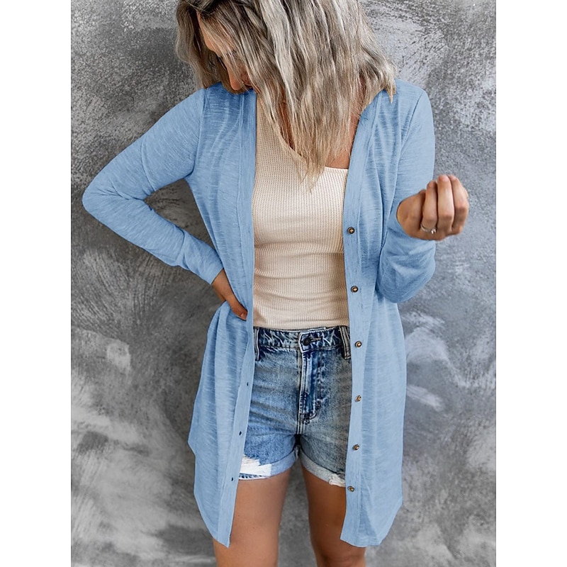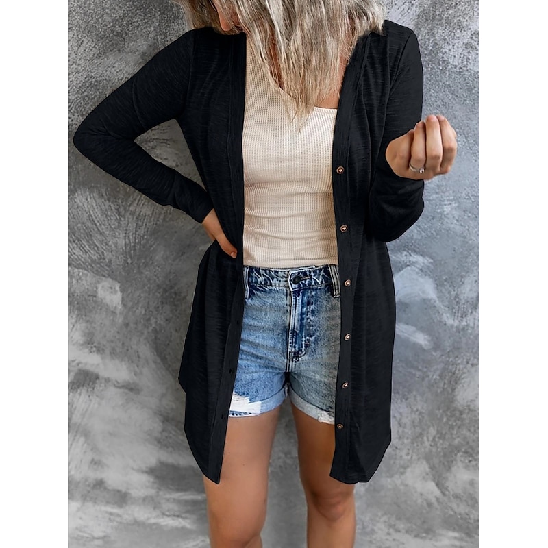 Women's Casual Jacket Breathable relaxing Pocket Casual Plain Vacation Street Casual Daily Wear Single Breasted Long V Neck Regular Fit Long Sleeve Outerwear Black White Pink Summer Spring