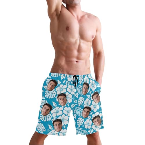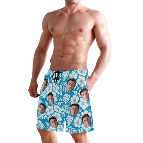 Personalized Blue Flower Picture Men's Swim Trunks for Family Father's Day 4