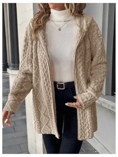 SOLY HUX Women's Open Front Fleece Jacket Fuzzy Hooded Long Sleeve Cardigan Winter Coat Casual Outerwear