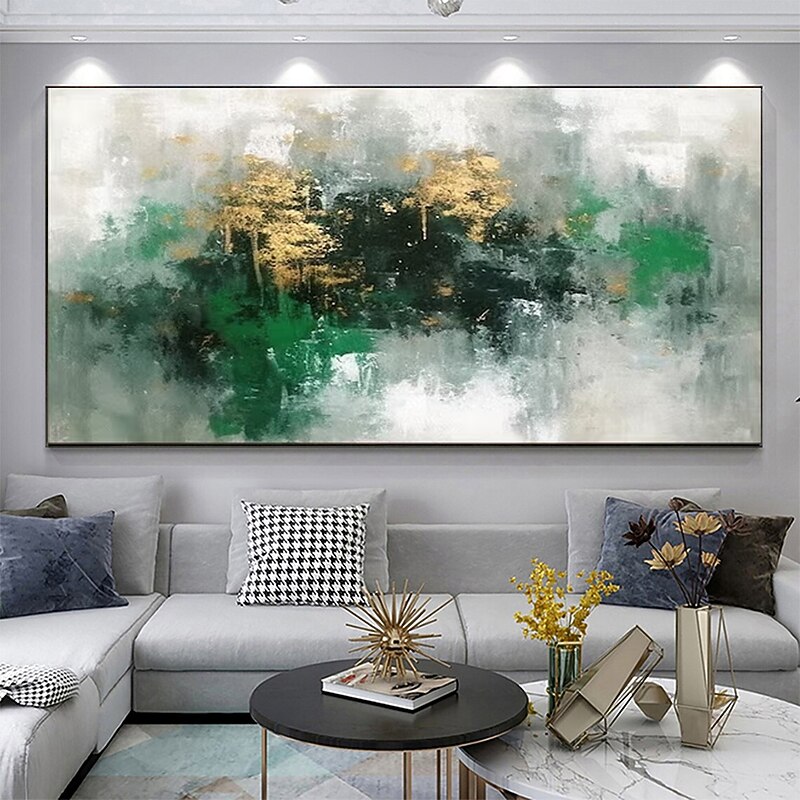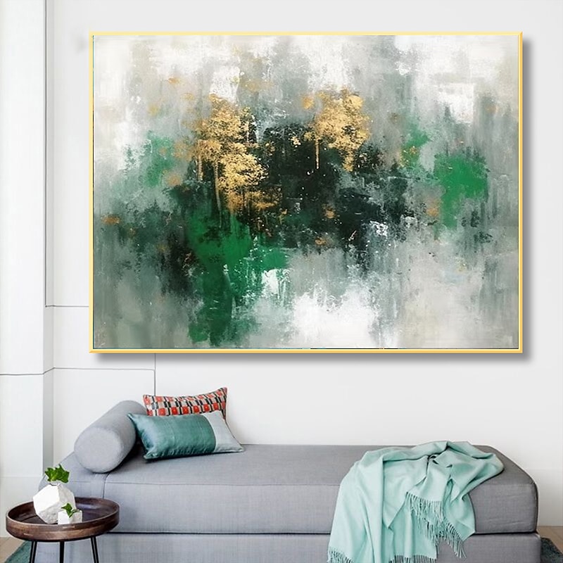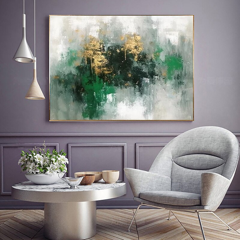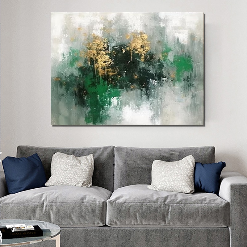 More information about Handmade Oil Painting Canvas Wall Art Decoration Hand-painted Modern Green Golden Abstract for Home Decor Rolled Frameless Unstretched Painting