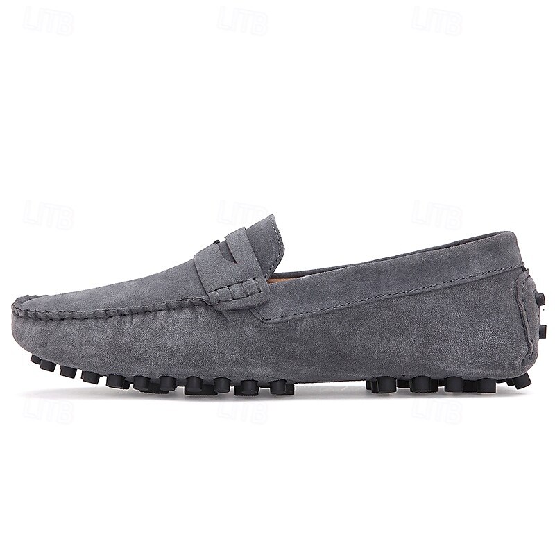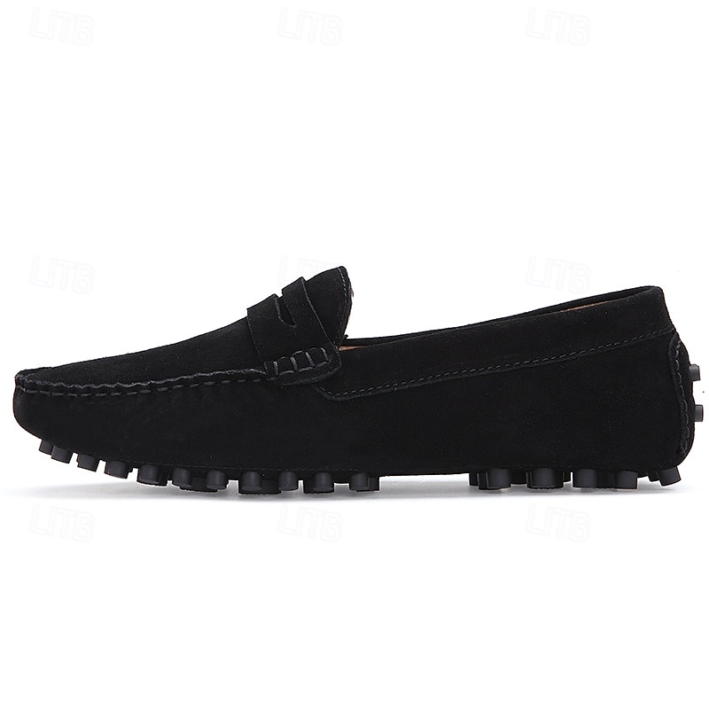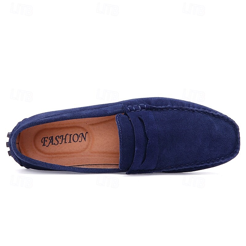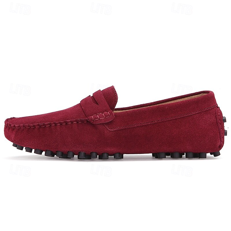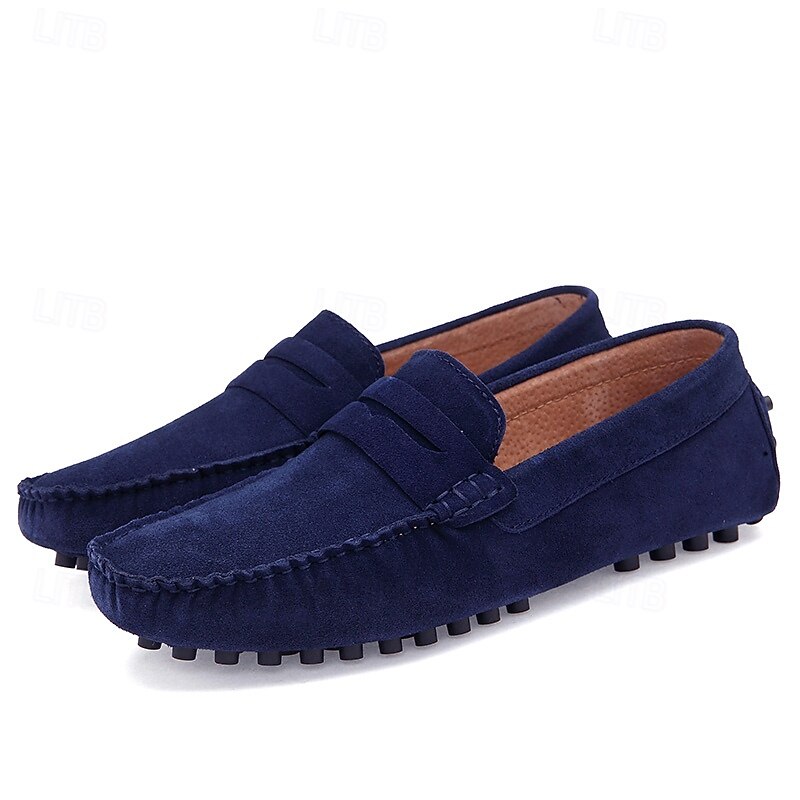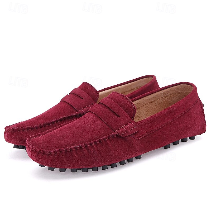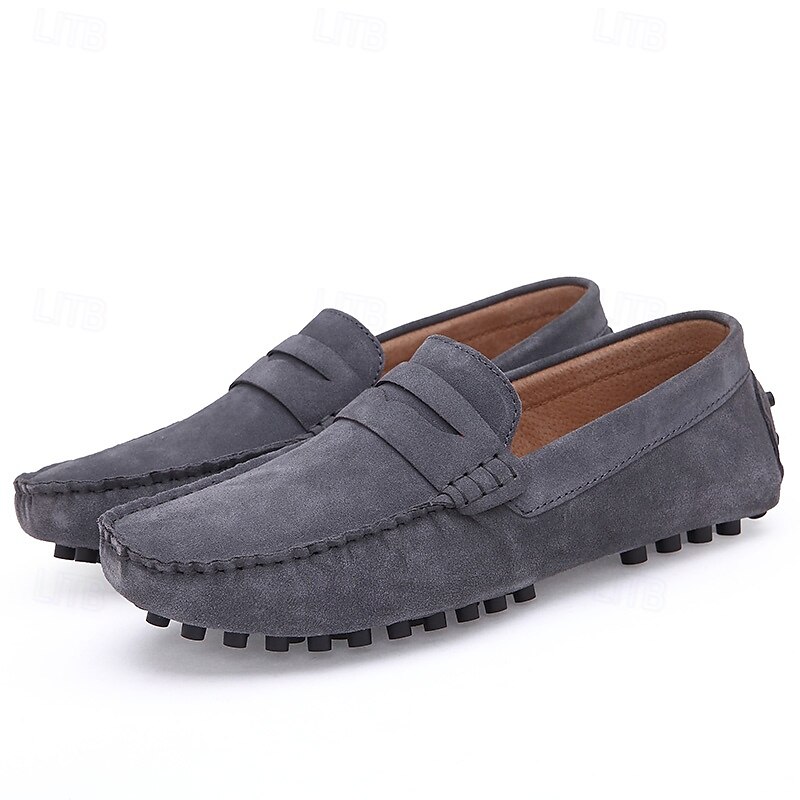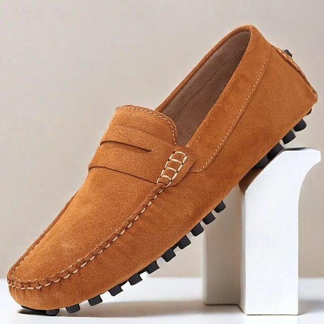 Men's Brown Suede Penny Loafers – Casual Slip-On Driving Shoes with Anti-Slip Sole 37