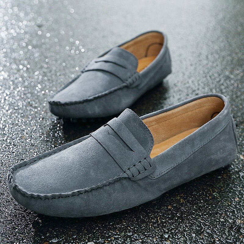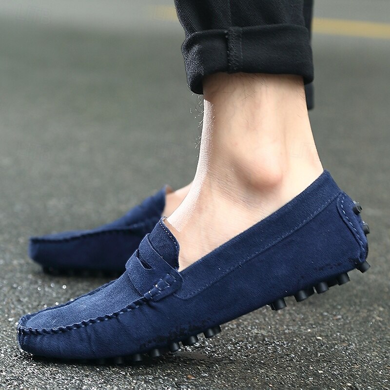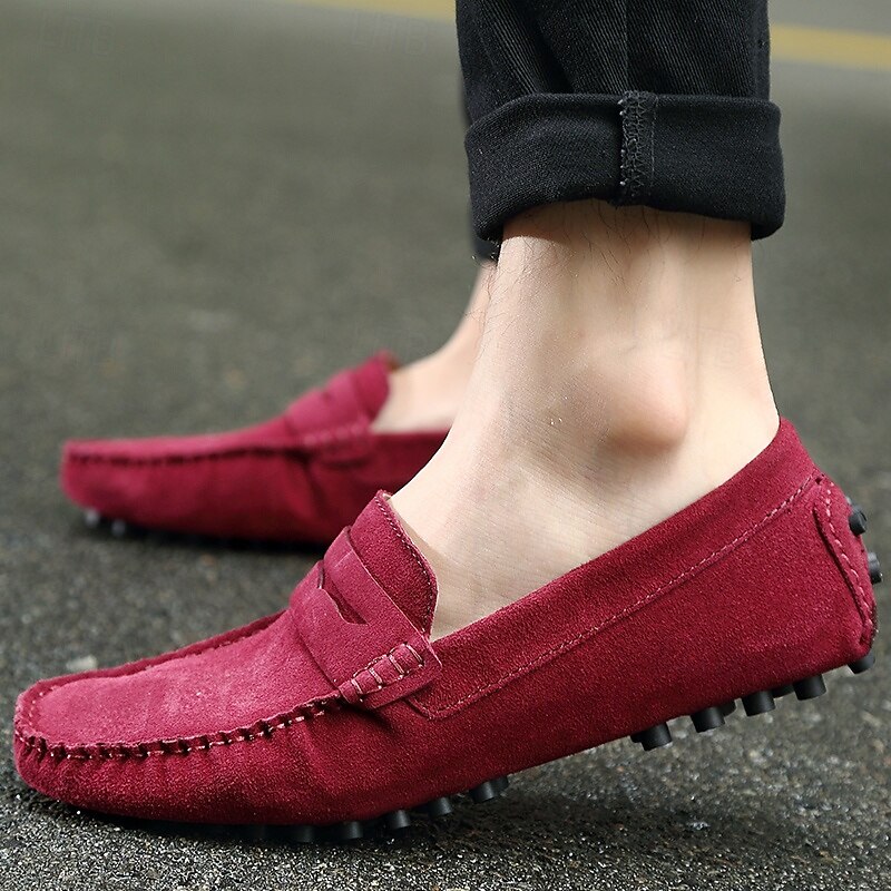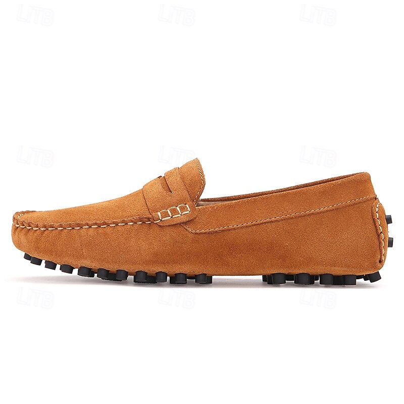 Men's Brown Suede Penny Loafers – Casual Slip-On Driving Shoes with Anti-Slip Sole 35