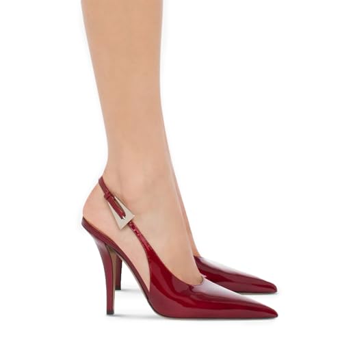 • Elegant Design: Featuring a sleek slingback style and pointed closed toe, these stiletto heels exude sophistication. The classic patent leather finish and metal buckle strap add a touch of timeless charm, perfect for elevating any outfit.