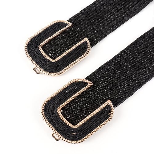 sought-after ! Women's Metal Braided Belt Fashion Holeless Buckle Braided Summer Raffia Web Belt