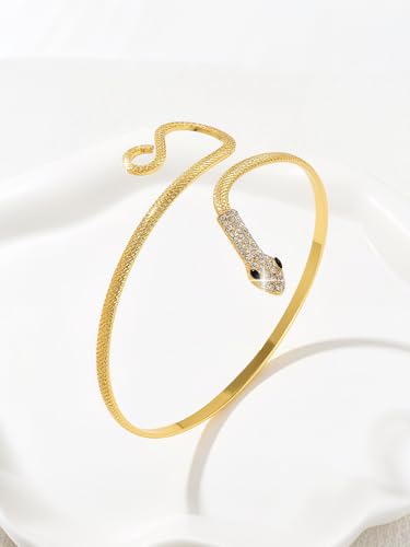 • Adjustable Gold Snake Arm Bracelets. This adjustable snake bangle bracelet is sized to fit most people. The gold arm cuff is 3.3 inch wide,and the snake bracelet is easy to adjust and flexible, lightweight and comfortable to wear