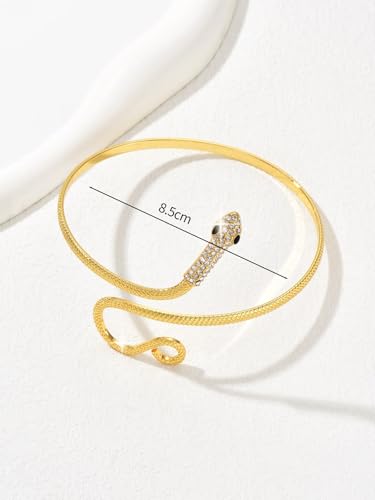 Gold Snake Arm Cuff Crystal Upper Arm Band Cuff Bracelets Sparkle Rhinestones Wrist Cuff Gold Bracelet Punk Adjustable Open Cuff Armlet Armband Jewelry for Party Prom 6