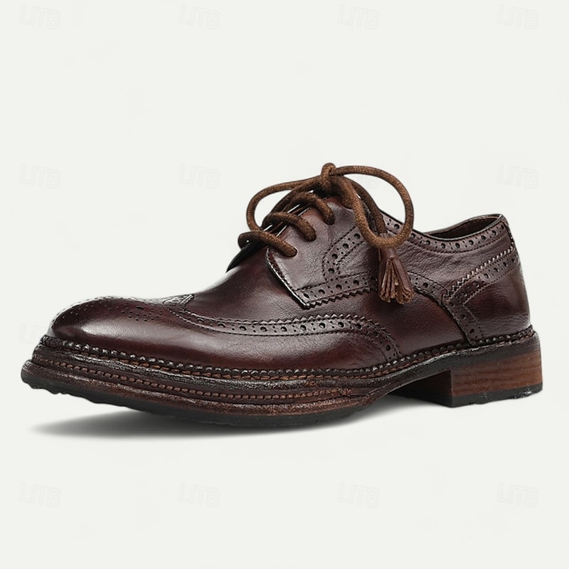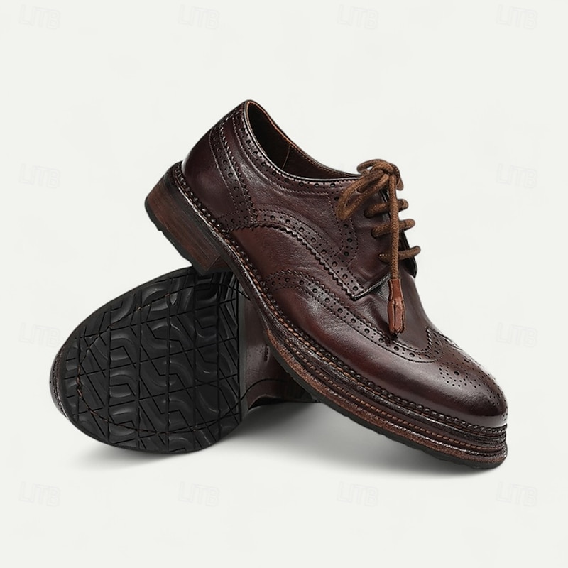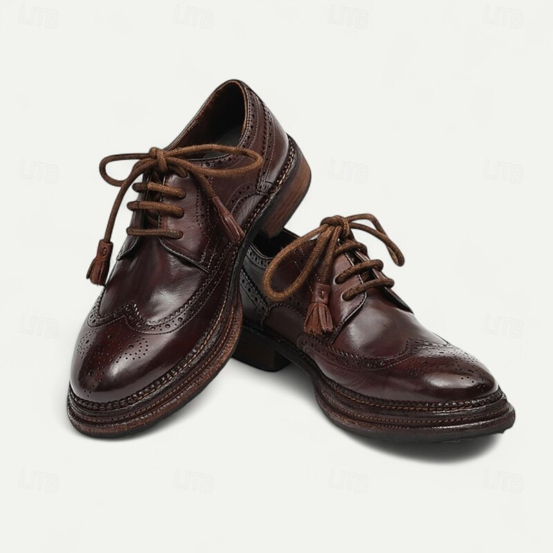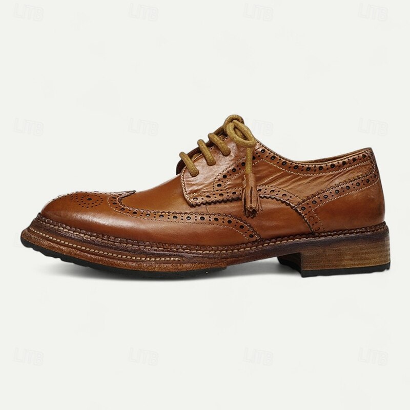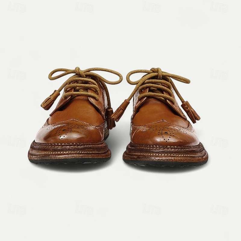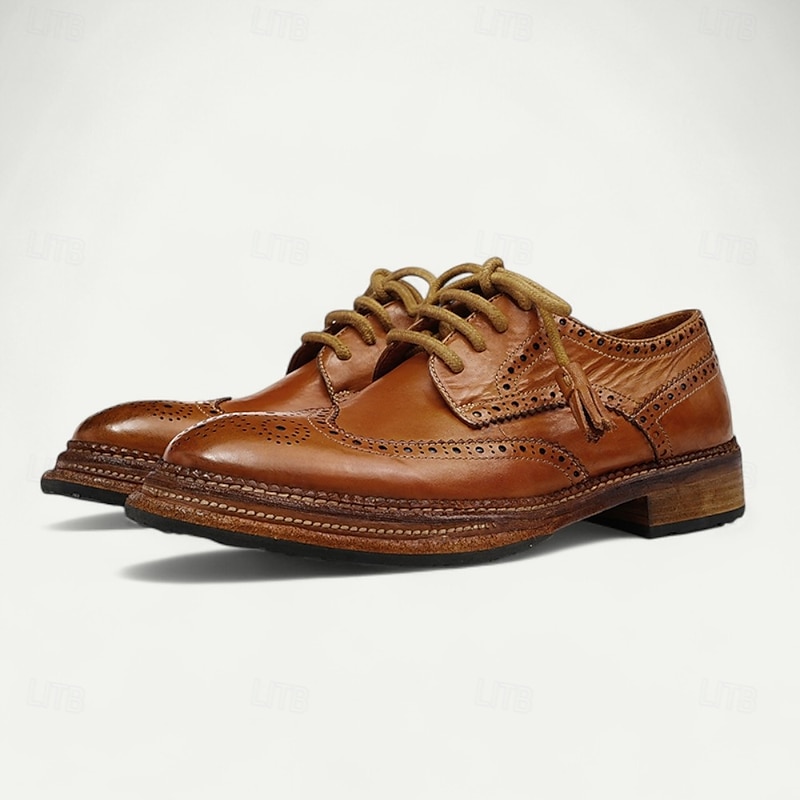 Men's Tan Leather Wingtip Brogue Shoes with Goodyear Welt and Lace-Up Design - Elegant and Comfortable Formal Shoes for Professional and Social Events 1
