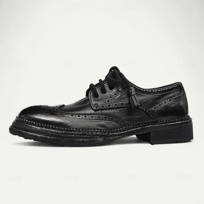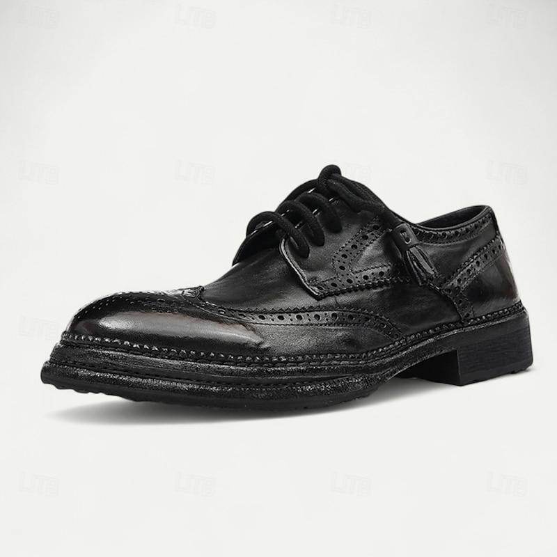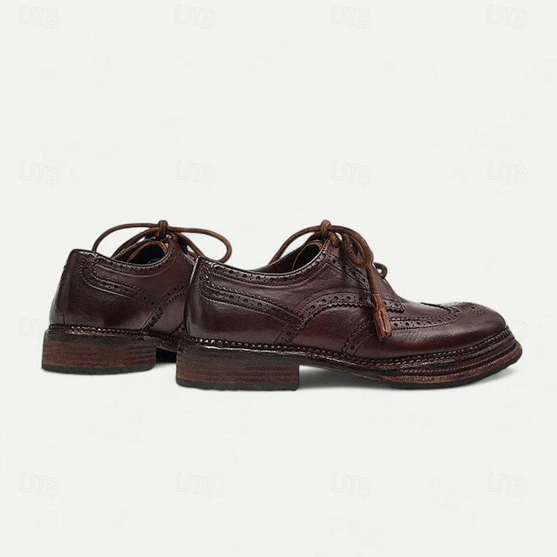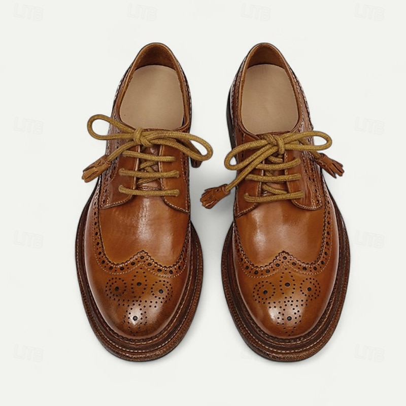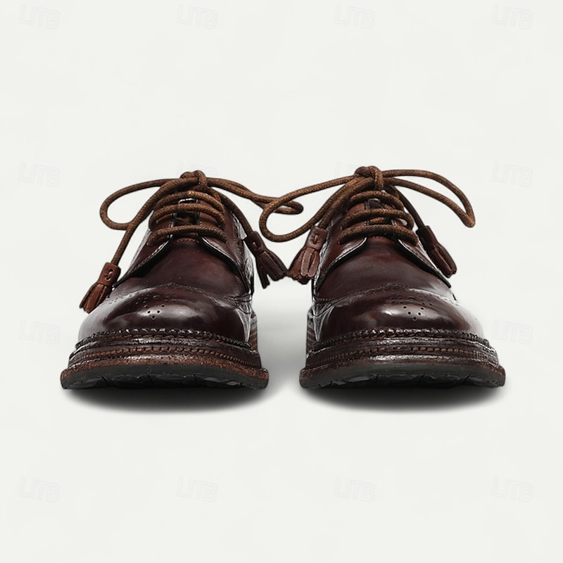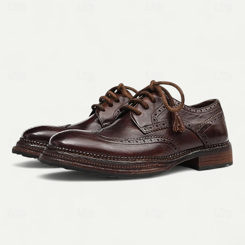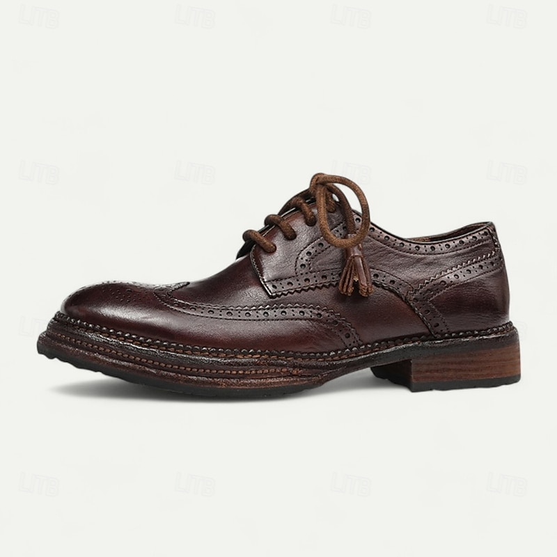 Men's Tan Leather Wingtip Brogue Shoes with Goodyear Welt and Lace-Up Design - Elegant and Comfortable Formal Shoes for Professional and Social Events 1