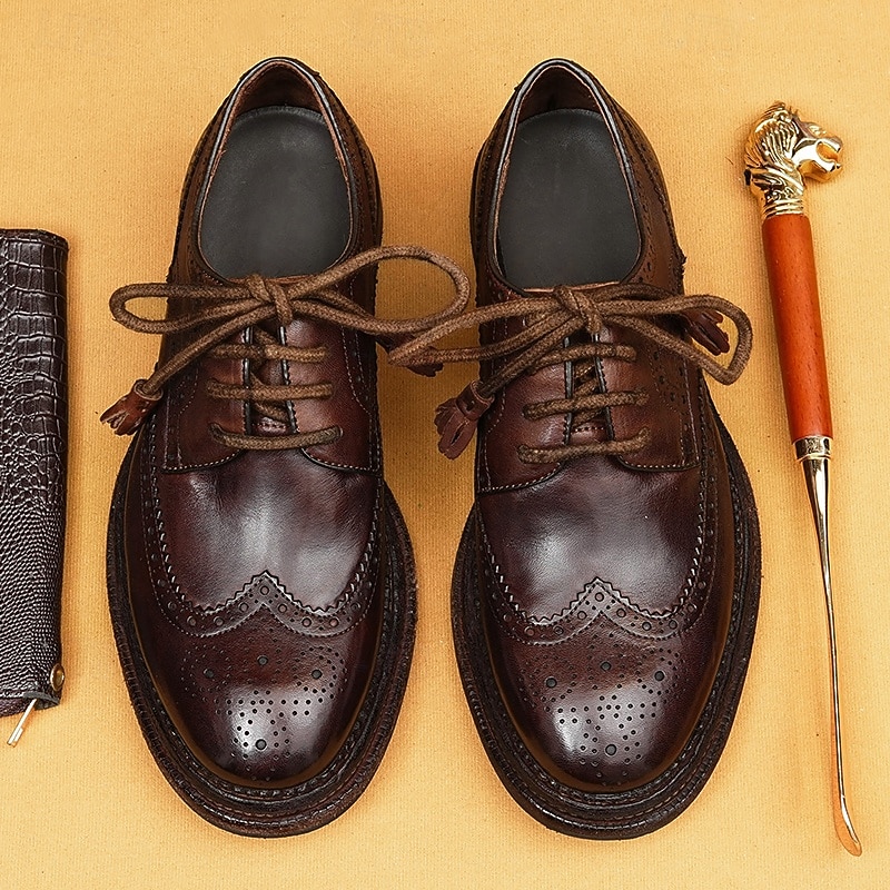 Men's Tan Leather Wingtip Brogue Shoes with Goodyear Welt and Lace-Up Design - Elegant and Comfortable Formal Shoes for Professional and Social Events 26