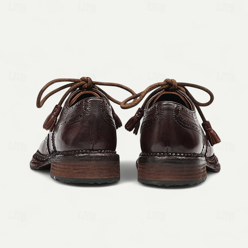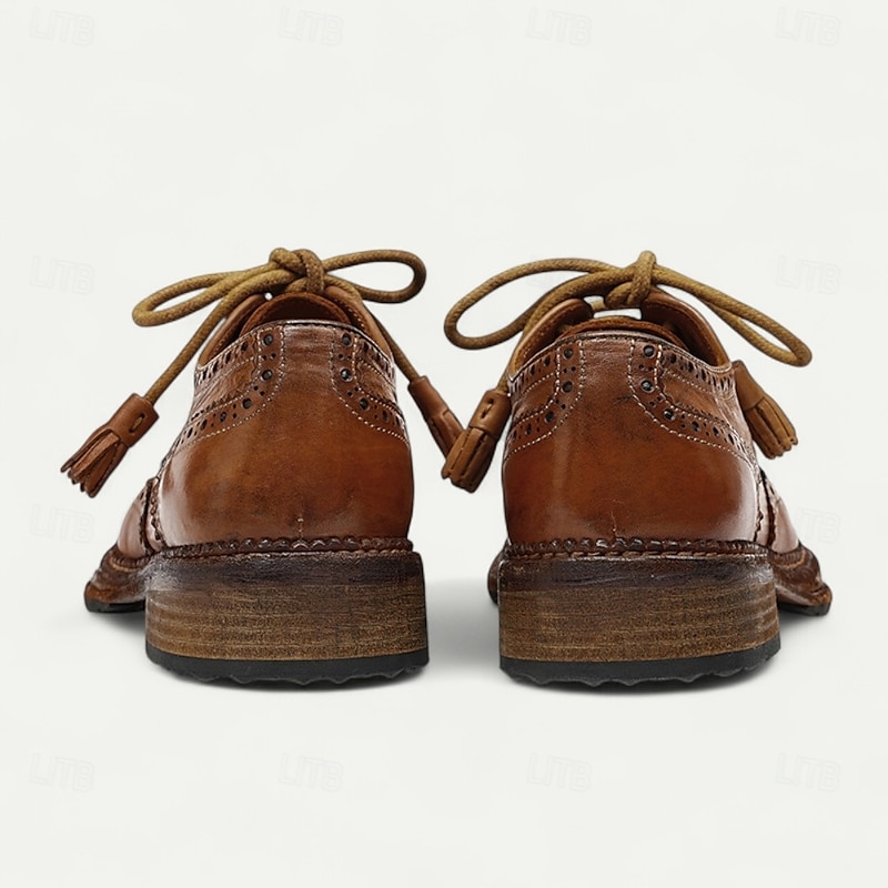Men's Tan Leather Wingtip Brogue Shoes with Goodyear Welt and Lace-Up Design - Elegant and Comfortable Formal Shoes for Professional and Social Events 28