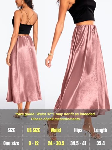HOT ! Women's Heavy-Drape Satin Maxi Skirt, Elastic High Waisted A-Line Formal Skirts for Special Occasions