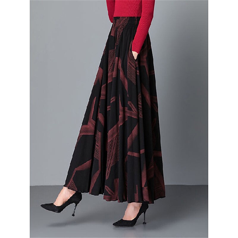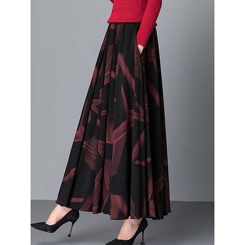 More information about Women's Skirt A Line Maxi High Waist Skirts Pleated Pocket Print Floral Office / Career Street Winter Fashion Casual Black Yellow Red