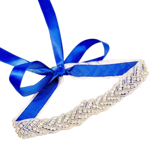 More information about CRASPIRE Rhinestone Bridal Belt Blue Wedding Sash Metal Alloy Bling Crystal Glitter Satin Ribbon Chain Handmade Diamond Decoration Dress Waist Belts for Party Bridesmaid Prom Gowns Women Supplies